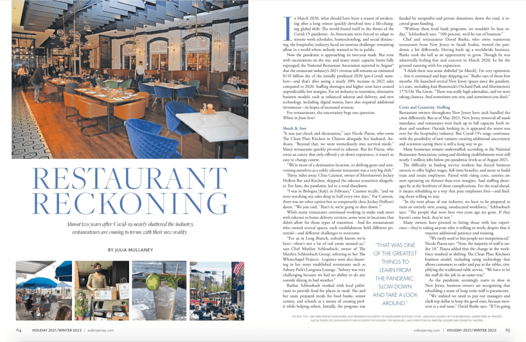 Restaurant Reckoning: Edible Jersey Magazine, 2021